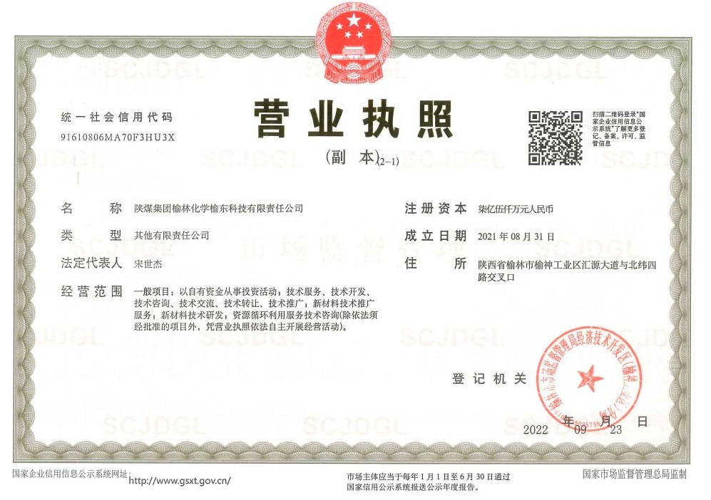 陜煤集團榆林化學榆東科技有限責任公司由東華科技與陜煤集團榆林化學有限責任公司共同設立,注冊資本金7.5億元,其中東華科技持股20%。經營范圍包括以自有資金從事投資活動,技術服務、技術開發、技術咨詢、技術交流、技術轉讓、技術推廣,新材料技術推廣服務,新材料技術研發,資源循環利用服務技術咨詢等業務。