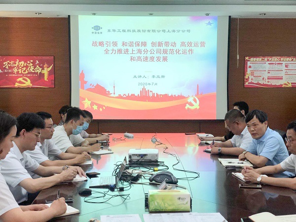 7月3日,東華科技黨委委員、副總經(jīng)理李立新為上海分公司的黨員干部上了一堂生動(dòng)的黨課,總結(jié)了近一年上海分公司取得的成績,展望了“十四五”上海分公司以及公司總部的發(fā)展目標(biāo)。會(huì)議由上海分公司黨支部書記陳維武主持。