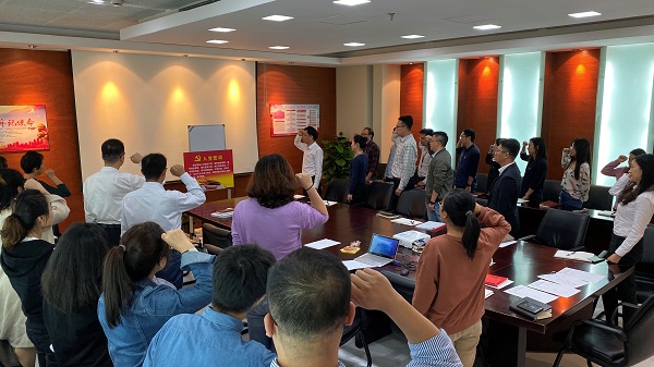 王樹明在會議上發言,除了傳達主題教育的實施指導,重點講了做好迎接集團公司督導檢查工作,面對檢查要思想上高度重視,工作上精心準備,明確做了什么、取得了什么成果,全公司上下團結一致,以十足的準備接受集團公司督導組檢查。接著,劉昌峰對近期的紀檢工作進行了宣貫并傳達了相關文件,對分公司迎接檢查的紀檢方面工作提出了指導意見。隨后,分公司黨支部圍繞“堅定理想信念,踐行黨的宗旨”進行了專題集中學習研討,研討如何發揮黨員先鋒模范作用,加強自身政治素養和政治能力建設。期間,黨員和領導干部積極發言,一致認為黨員同志要有擔當,敢于主動承擔責任,在新時代依然要堅持最初入黨時的理想信念,不斷提高個人的思想素質和工作能力,為公司和祖國的發展添磚加瓦。最后,分公司黨支部書記陳維武帶領全體黨員集體宣誓,重溫了入黨誓詞。