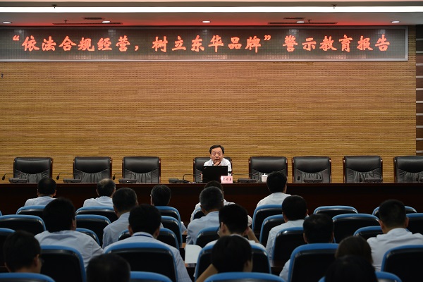會上,公司黨委副書記、紀委書記袁經勇作了《破除金錢開道,依法合規經營,樹立東華品牌》的專題警示教育報告,公司市場管理部、項目管理部、采購部等部門人員共計50余人參加了本次會議。