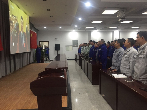 隨著國歌響起,天盈石化董事長楚建江、東華項目經理吳大農、昆侖總監(jiān)常霖帶領全場人員起立跟隨直播共同唱起了國歌,歌聲激昂嘹亮。在收看開幕會過程中,大家聚精會神聽報告,仿佛置身于大會現(xiàn)場,時而激動,時而自豪,現(xiàn)場掌聲經久不息。維護南疆的團結與穩(wěn)定也是我們每一個駐疆人員的責任與義務,而天盈乙二醇項目的建成將極大增強了阿拉爾市發(fā)展后勁和經濟實力,更有助于增強兵團在南疆的承載力、帶動力和影響力,從而促進產業(yè)結構升級,促進兵地融合,增加就業(yè),改善民生,實現(xiàn)黨中央提出的使兵團真正成為促進南疆穩(wěn)定和發(fā)展的穩(wěn)定器、大熔爐、示范區(qū)作用。開幕會結束后,項目組又及時轉發(fā)了黨的十九大全文報告,組織現(xiàn)場同事學習會議精神。
