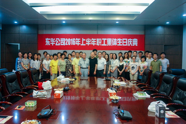 為加強公司企業文化建設,增強員工對公司的認同感和歸屬感,也為表達公司對員工的點滴關懷,對員工長期以來的辛勤工作給予肯定和感謝。6月29日下午,公司在A樓三樓第二會議室舉行了“東華公司2016年上半年度職工生日慶典”。有近50名老中青“壽星”們齊聚一堂,大家領蛋糕卡,寫祝福,同時公司還為每一位壽星們準備了精美的由公司董事長、總經理和工會主席親自簽名寄語的生日賀卡,雖是一個小小的舉動,但是傾注了公司對員工的親切關愛,可以說這樣真情的關懷灑向公司的每個角落。