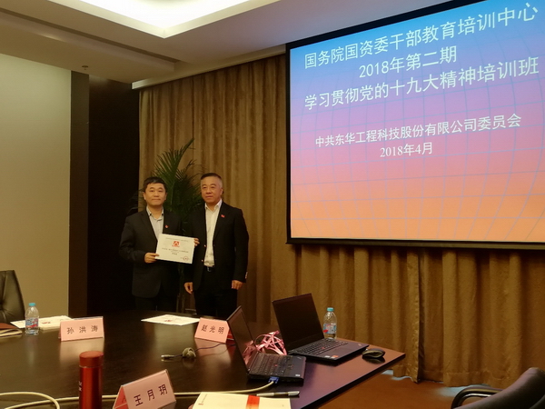 4月21日-25日,東華公司黨委組織19名專職黨務干部、1名九三學社民主黨派人士共20人,參加了國務院國資委干部教育培訓中心2018年第二期學習貫徹黨的十九大精神培訓班。該班在北京未來科學城國電研究院舉辦,共有四家中央企業(yè)360多名學員參訓。
